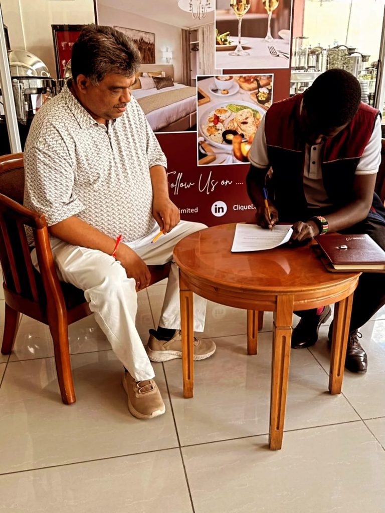 The Partnership MOU was signed by Mr. Sudhir Shah @sudhir3759 , Managing Director, Clique Limited and Allan Ndekwe @allan_ndekwe , CEO, Kenya Tourism Awards (KTA). Also present were Ndassya Kelvin, Head of Operations, KTA, @sonalisumaria and @madhvi_jadhav from Clique Limited.
